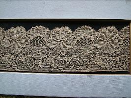 | Description / विवरण | It is a machine made lace portion of the floral pattern. It is a semicircular shaped. Base colour is white. |
