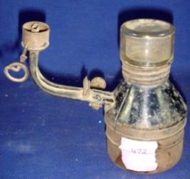 | Description / विवरण | Lamp having two provisions of light. The oil tank is cylindrical in shape and the base is flat and circular. |