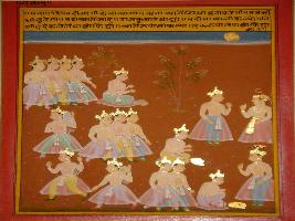 | Description / विवरण | Miniature painting based on Panchtantra depicting the story of five prince. The jogi says that they will meet siddhivrati while moving ahead on their way and will get wealth and knowledge. |