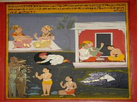 | Description / विवरण | Miniature painting based on Panchtantra depicting that wealth and power resides only with intellect and knowledgeable persons. |