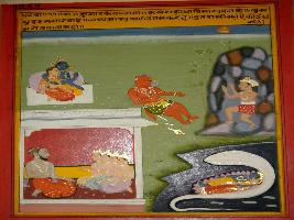 | Description / विवरण | Miniature painting based on Panchtantra depicting a prince asking sage for the way to ger wealth. Then he said that without tactics, no one can get happiness same as Vishnu killed demon Madhu by cheating. |