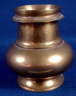 | Description / विवरण | Brass lota having high neck, round body and footed circular base. It is without any decoration. |
