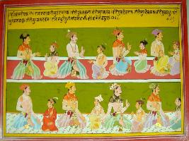 | Description / विवरण | Miniature painting based on Harivansha depicting eight kings with their sons, seated in two rows. The names of the kings and the sons are given in the writing on top of the painting. |