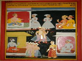 | Description / विवरण | Miniature painting based on Panchtantra depicting that four princes going in search of wealth by thinking that without wealth quality, friend, wife all renunciate them. |