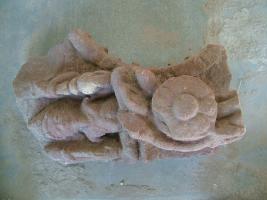 | Description / विवरण | It is a sculpture of Brahma. Brahma is shown in lalitasana. It is four armed. A floral motives are shown below the lalitasana. |
