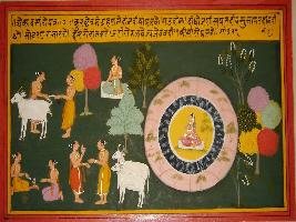| Description / विवरण | Miniature painting based on Ekadashi Mahatmya depicting Ekadashi vrat of Jeth month depicting the importance of daan given in Ekadashi is equivalent boon got due to the all other sacrifices. |