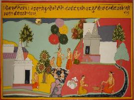 | Description / विवरण | Miniature painting based on Ekadashi Mahatmya depicting Ekadashi of Jeth month depicting that daan done in Grahan and dwadashi are most fruitful for any human being. |