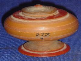 | Description / विवरण | Hing lota container , made of wood, having a circular lid, circular body and footed base. |