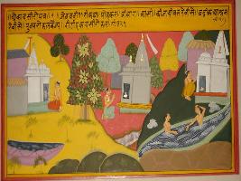 | Description / विवरण | Miniature painting based on Ekadashi Mahatmya depicting Ekadashi of Jeth month depicting the fruitfulness of Ekadashi vrat performed in the hermitage of sage Badri in Kashi and at other places like Prayaga and other pilgrimage. |