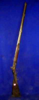 | Description / विवरण | Single barrel muzzle loading, flint lock gun with wooden butt having incised check design and floral inlay work. |