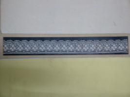 | Description / विवरण | Nottingham machine lace Dentella Mattese . It is a machine made cotton thread lace designed with floral designs. The upper margin border is designed in zigzag pattern. |