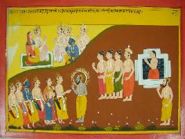 | Description / विवरण | Miniature painting based on Mahabharat - Vana parva. The painting depicts that the Pandavas are running in the vana where they met many Brahman rishis. |