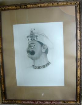 | Description / विवरण | Glass framed black and white photograph of Maharaja Ratan Singh who ruled from 1765 to 1769. He is facing right, has moustaches and wearing a turban. |