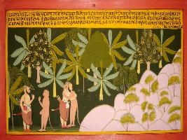 | Description / विवरण | Miniature painting based on Mahabharat - Vana parva depicting the meeting of Bhim and Hanuman than Hanuman ask to Bhim that they will be got one day the true justification and successfully coming out from their problems. |