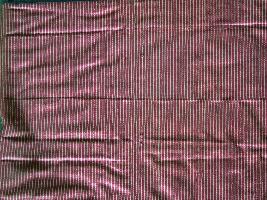 | Description / विवरण | It is a piece of silk cloth in a rectangular shape. Red and cream stripes are used on it. It is a Surat silk. |