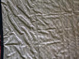 | Description / विवरण | It is a piece of silk cloth in a rectangular shape. Black and cream stripes are used on it. It is a Surat silk. |