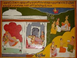 | Description / विवरण | Miniature painting based on Ekadashi Mahatmya depicting Ekadashi of Shravan month depicting that a king got son due to worship of Shravan Ekadashi. |