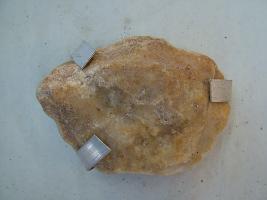 | Description / विवरण | It is a yellow coloured broken piece of a hand axe, having down portion in sharp conical shape and the middle portion, a wider in appearance with sharp edge. |