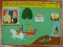 | Description / विवरण | Miniature painting based on Mahabharat - Bhishma parva depicting Sanjay says to the king that Bhishma, who is fighter like Indra, in paitence like Himachal. In deepness like sea and large like earth is killed today. |