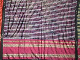 | Description / विवरण | It is a breast cloth in a rectangular shape. The upper portion is in sky blue and maroon thin stripes. In bottom slightly broad red colour border with marginally both side two geometrical stripes in green and cream colour is present. |