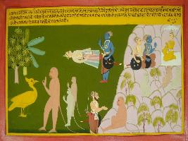 | Description / विवरण | Miniature painting based on Mahabharat - Vana parva. This painting Hanuman tells the story to Bhim about Ram and Sugriv. Hanuman ask that Sugriv is his king and they are helped Ram against Ravan. |