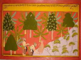 | Description / विवरण | Miniature painting based on Mahabharat - Vana parva depicting that Bhim after seeing old Hanuman thought in his mind that this monkey is weak and he will throw him to Yampuri by his tail. Then he started taking it up but he was not even able to shake it. |
