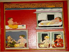 | Description / विवरण | Miniature painting based on Panchtantra depicting the story of Manibhadra who lives in Patliputra and who is very kind and rich. |