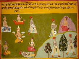 | Description / विवरण | Miniature painting based on Ekadashi Mahatmya depicting the importance of and Asad month. The paintings depicts that a person performed worship of Mahadev and moved to Himachal mountain. There he met sage Markandeya and Markandeya tell him about the Ekadashi vrat. |