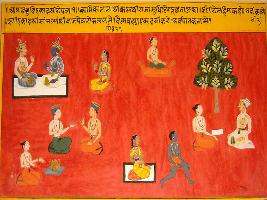| Description / विवरण | Miniature painting based on Ekadashi Mahatmya depicting Ekadashi of Asad month depicting Krishna telling Yudhisthir about the importance of Ekadashi vrat on this month. |