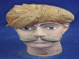 | Description / विवरण | Male head wearing turban of red colour with Gota work on it, having fair complexion heavy moustache and tilak in white and red colour on forehead. |