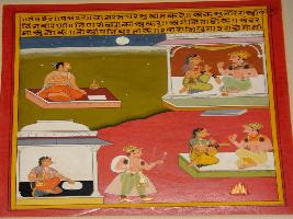 | Description / विवरण | Miniature painting based on Panchtantra depicting the monkey telling the story of a Brahman s wife who is bad to the crocodile. |