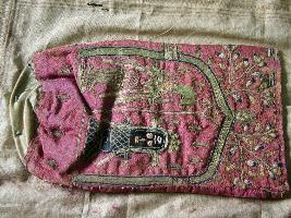 | Description / विवरण | It is a bag to carry the sacred ashes with silk embroidery and gold thread work. Subjectively Hindu mythological figure of gods and goddess is present under the shade of tree in several colours on a dark red ground. |