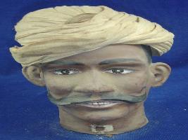 | Description / विवरण | Male head wearing turban of cream colour, having long moustache and four teeth can be seen through open mouth. |