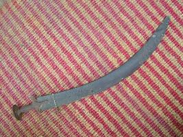 | Description / विवरण | It is a sword covered with leather above it. Hilt at bottom is circular in shape but solid not hollow. |