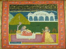 | Description / विवरण | Miniature painting based on Ragmala depicting Ragini Behangini of Rag Shri depicting Ragini Behangini is desperate to consoling her. |