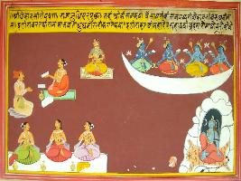 | Description / विवरण | Miniature painting based on Ekadashi Mahatmya depicting Ekadashi of Chaitra month depicting Krishna telling Yudhisthir about the Ekadashi vrat performed by king Mandhata. |