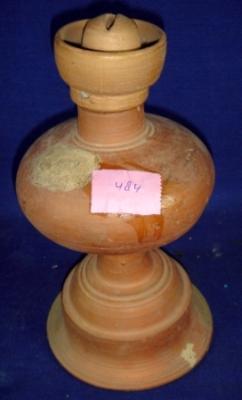 | Description / विवरण | Terracotta oil lamp consisting of provision of wick on top, circular oil container and a dome shaped footed base. |