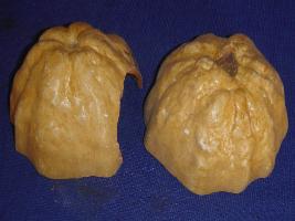 | Description / विवरण | Guava, yellow in colour and broken into two pieces. |