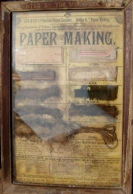 | Description / विवरण | Specimen showing various processes in the art of paper making and use of cotton lines and other materials in the processes. |
