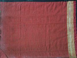 | Description / विवरण | A piece of cotton cloth having horizontal lines in reddish colour. Its border has geometrical design in cream colour. |
