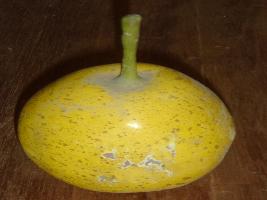 | Description / विवरण | Guava with stem, made of clay, in yellow colour. |