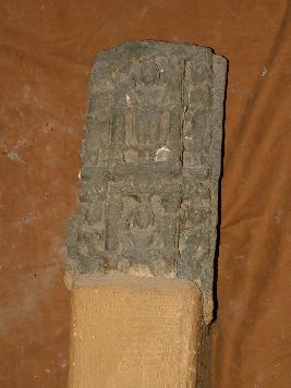 | Description / विवरण | This is an Surya farm of architectural piece carved with Surya and two female figures in standing posture. |