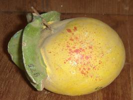 | Description / विवरण | Guava, made of clay, in yellow and green colours. |