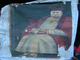 | Description / विवरण | It is a painting of a king, shown sited on a chair, wearing floral designed shawl, a Roman toga and a golden amulet with a black turban on head. |