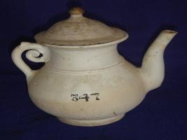 | Description / विवरण | Ceramic kettle having round base with globular body, spout, broad neck and averted rim. It also has lid with knob. It is painted with white colour. |