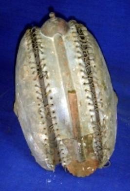 | Description / विवरण | Iron helmet made of three plates joined together with chains. It has the nose guard, metallic floral fittings at both sides and cloth lining in the interior. |