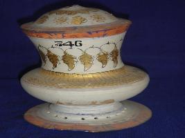 | Description / विवरण | Kunja, with flat circular base with perforated holes around it, circular body, long neck and broad mouth. It also has lid on top. Decoration is done all over with different colours in floral and geometrical designs. |
