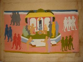 | Description / विवरण | Miniature painting depicting a monkey king probably Bali with his courtiers in a palatial structure and many monkeys are depicted surrounded. It is an incomplete painting. |