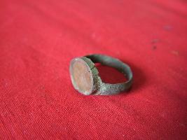 | Description / विवरण | Finger ring of brass. It has an oval shape yellow glass stone embedded in it. |