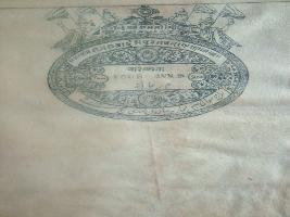| Description / विवरण | A Jaipur stamp print, value of four annas. It has four human half figures holding flags on the top with Shri Ramji printed in the centre. |